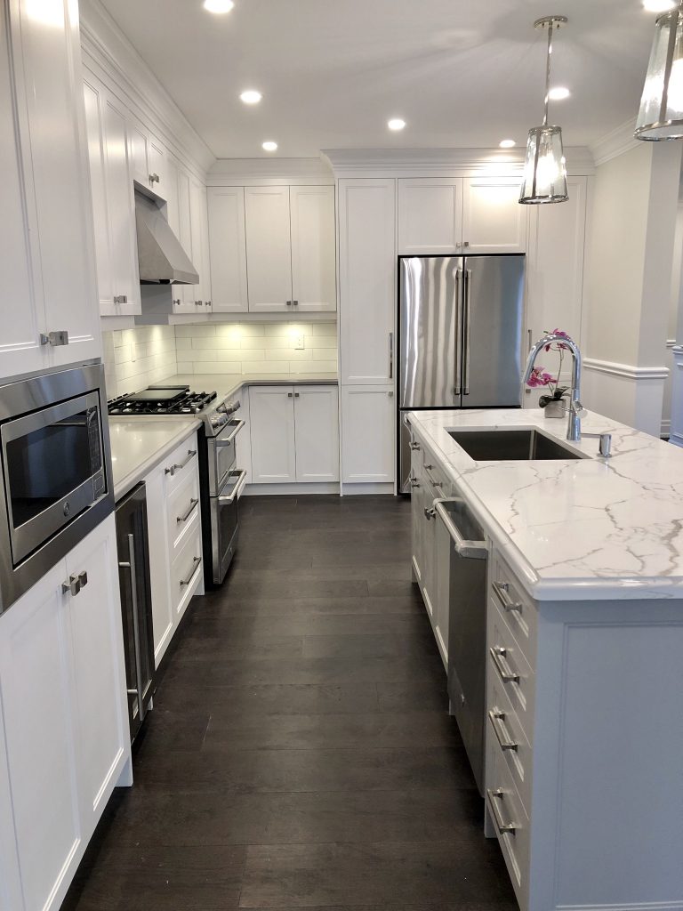 COLOR Palettes of black and white for sharp contrast with matte black fixtures creates a very elegant kitchen. White kitchens are a classic but today’s white kitchens have added drama with painted cabinets in blues, greys, greens and warm stained woods. Appliances in matte black and white stainless steel finishes add high style.